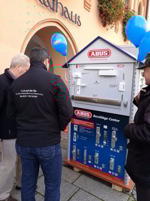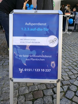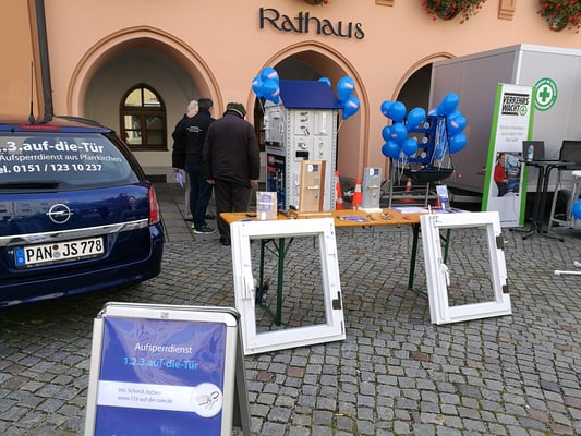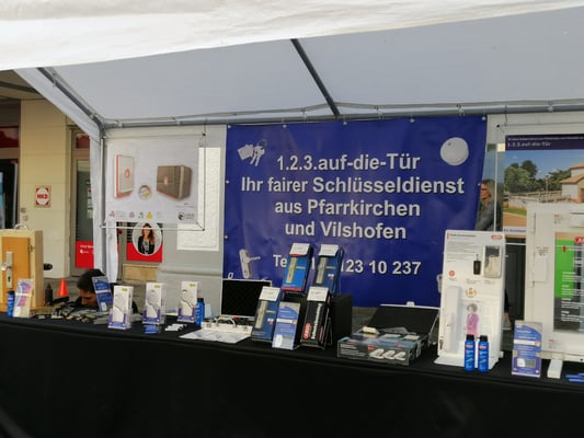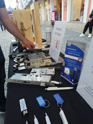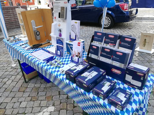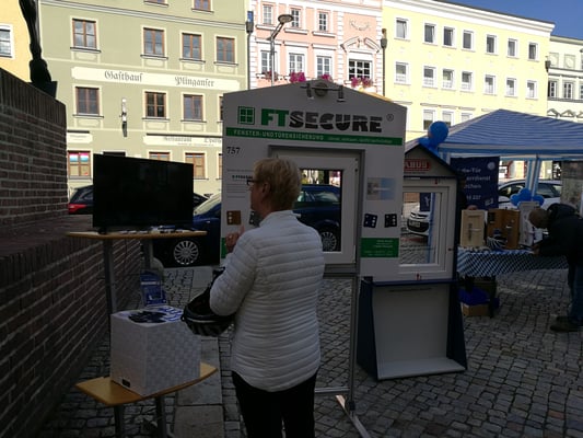 Bereits zum dritten Mal durften wir am Tag der Sicherheit in Pfarrkirchen unseren Schlüsseldienst vorstellen. Viele Bürger besuchten uns an unserem Stand vor dem Rathaus. Zum Thema Haus- und Türsicherheit stellten wir die neue Fenstersicherung von FTSECURE vor - ein kleiner Film der MDR-Sendung "Einfach genial" ermöglichte den Besuchern bereits einen ersten Eindruck. Interessierte Besucher konnten sich zudem wieder als Einbrecher am ABUS Testfenster versuchen oder Fragen zu Brandschutz und Türöffnung stellen.