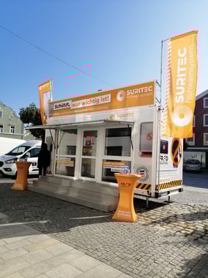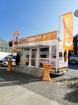 Am vergangenen Sonntag präsentierten wir unseren Messetrailer das erste Mal in Gangkofen. Bei tollem Wetter durften wir trotz Corona am Marktplatz Gangkofen unser Infraschall-Frühwarnsystem von Suritec vorstellen. Der Messetrailer ist dafür super geeignet, da wir mit den eingebauten Fenstern und der Tür die Funktionalität auf Basis der Infraschall-Technologie bestmöglich nachstellen können.