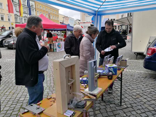 Der Aufsperrdienst 1.2.3.auf-die-Tür zeigte am Stand vor dem Wimmer-Ross mit Spezialwerkzeugen, wie einfach Einbrecher ungeschützte Türen öffnen können. Zahlreiche Besucher informierten sich zudem zum Thema Fenster- und Türsicherheit. Hierzu konnte man einen Blick auf bereits montierte Sicherheitsbeschläge an Musterfenstern werfen.