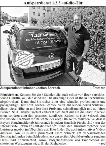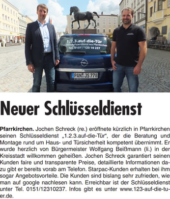 Ein Artikel zum Aufsperrdienst 1.2.3.auf-die-Tür in der Passauer Neuen Presse!