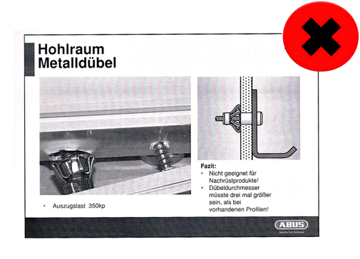 Wir empfehlen eine Montage nach DIN18104: Befestigungsanker ABUS BA oder Verbundmörtel-Set ABUS IM 100